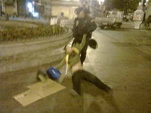 Las personas que estaban allí gritaban no a la violencia mientras eran arrastrados por la fuerza a los furgones. Si veis el vídeo escucharéis a una joven que a un cierto punto le dice a un agente deja el casco y siéntate, estoy aquí por el pan de tus hijos.