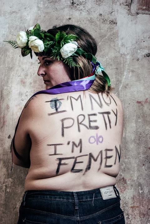 10- SOBRE EL FÍSICO DE LAS ACTIVISTAS DE FEMEN: Lara me explicó que en ningún momento las activistas deben cumplir ningún tipo de requisitos “Si una mujer quiere cambiar el mundo nadie va a pararla por su físico”. No responden pues a ningún tipo de parámetros. La activista expuso también que es la misma prensa quien hace la selección de fotografías “atractivas”. Me contóademás como una activista de FEMEN que tenía un físico fuera de los cánones patriarcales escribió sobre su cuerpo “No soy guapa, soy FEMEN” incitando a las personas a no ver simplemente a una mujer guapa desnuda sino a una activista luchadora. “La imagen en cambio fue interpretada como que la mujer se sentía fea y aún así podía ser de FEMEN. Hagamos lo que hagamos vamos a obtener críticas de ciertos sectores”.