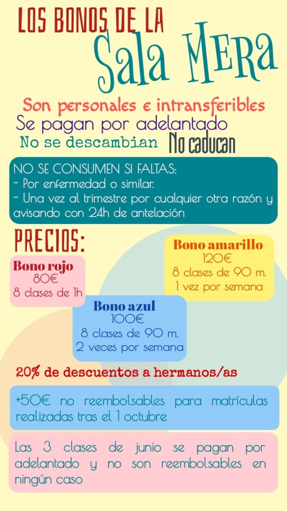 Si no tienes un bono de la Sala Mera, 40 € (o 25€ cada día del taller, si sólo quieres venir una vez).